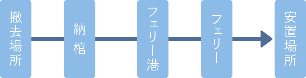 ③現地のフェリーターミナルに着きましたら、 フェリーを降りて、安置場所まで陸送いたします。