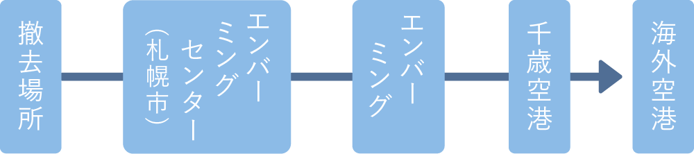 ⑥千歳空港へ搬送※遺体を受け入れる国の法律に従って手続きを行います。